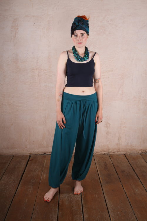 This simple and elegant Top is inspired by the shape of a kimono in the sleeve shape and the wide fitted waist band. The front and back are constructed in a crossing / crossing V shape. There is ample room for boobs at the front and the dress has a moderately low back. The sleeves are wide cap sleeves and can be buttoned up with a loop concealed inside the sleeve to add extra detail. There is a wide empire line or high waist band below which the top is fitted.
