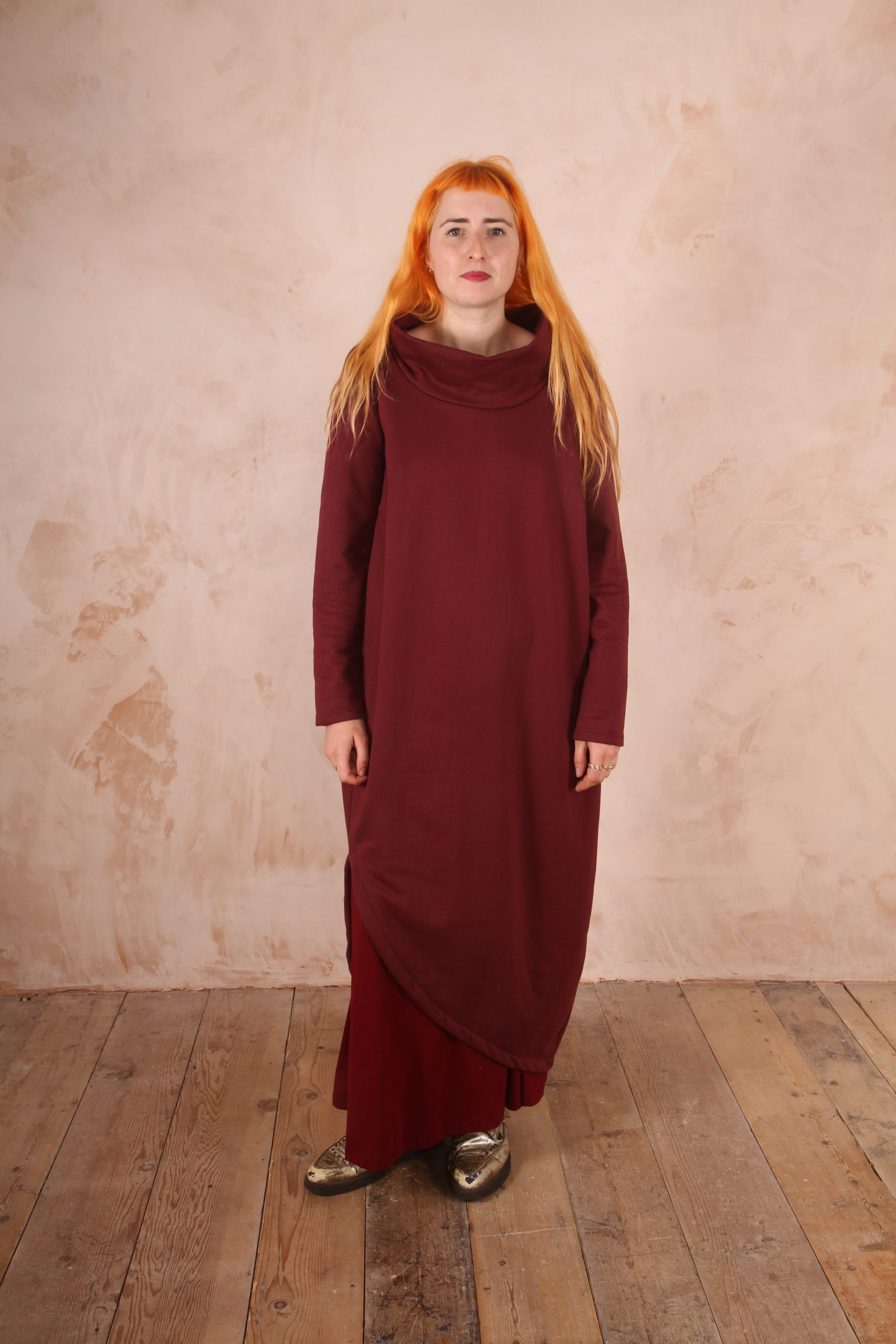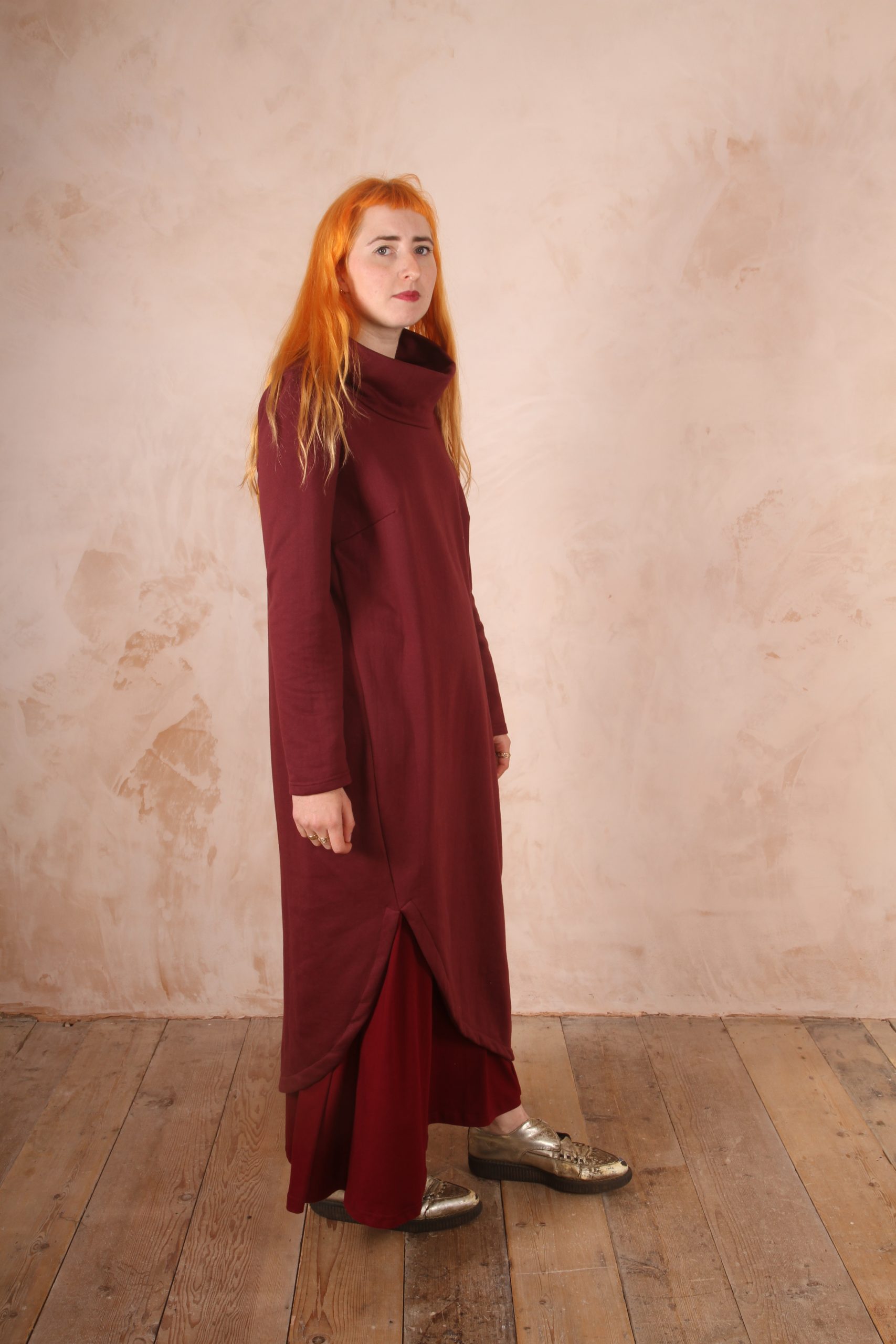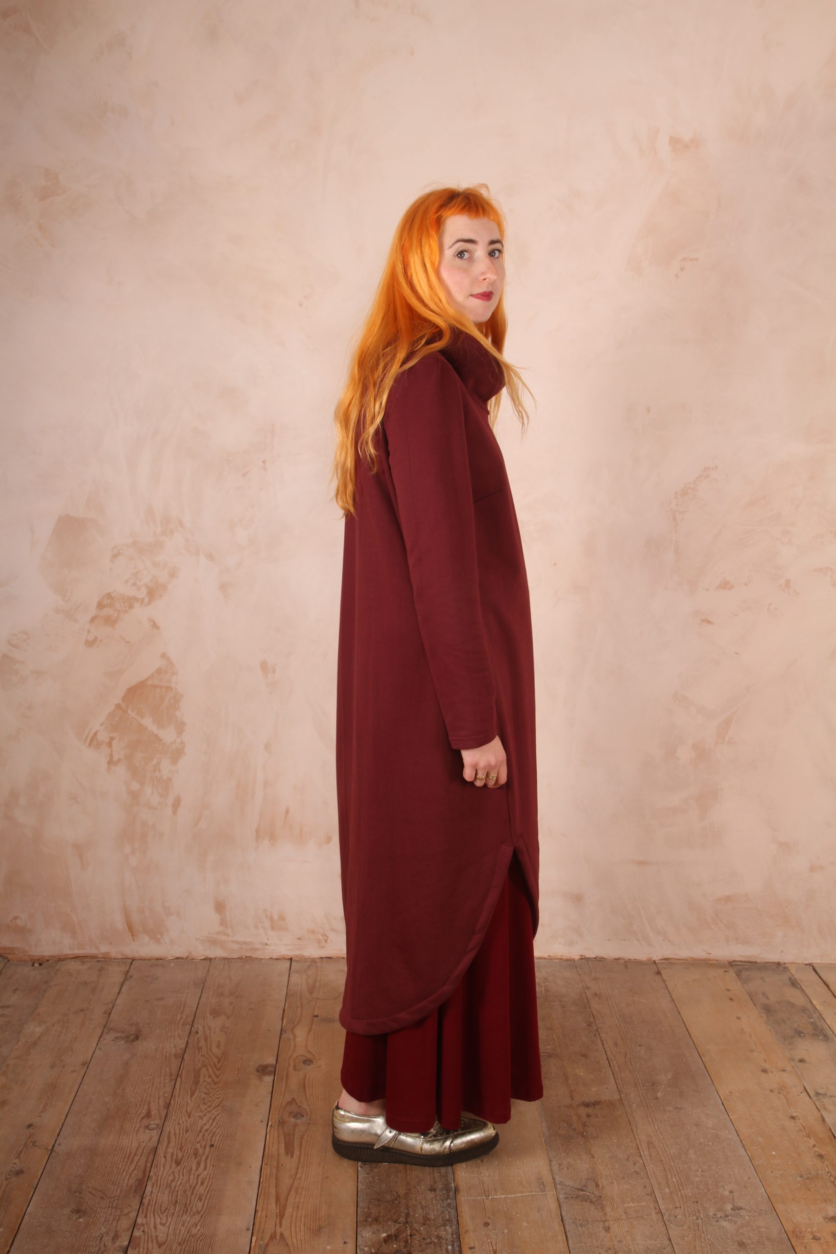 The Anya Dress is the perfect dress for lounging at home and for winter trips out as it is the perfect length not to touch the ground and long enough to keep you warm and cozy.