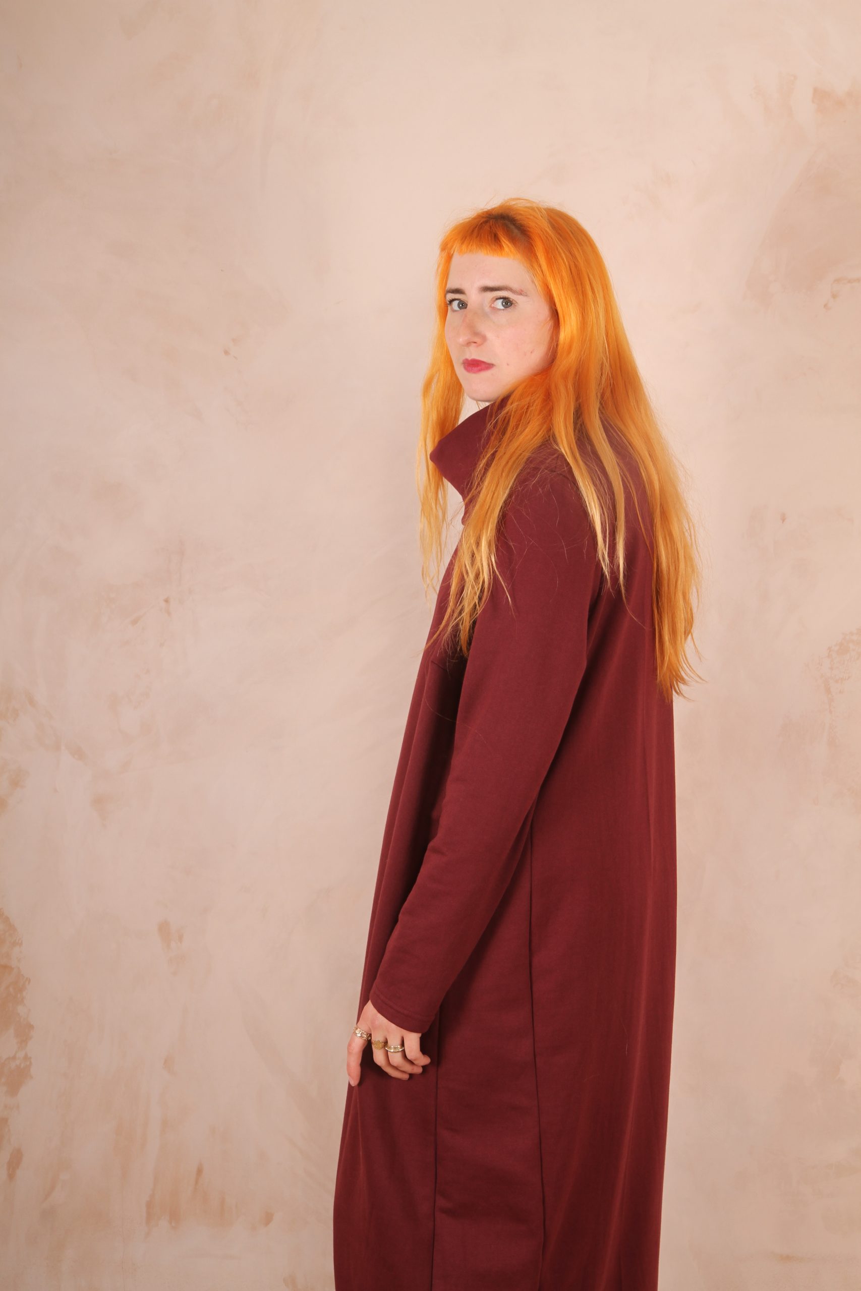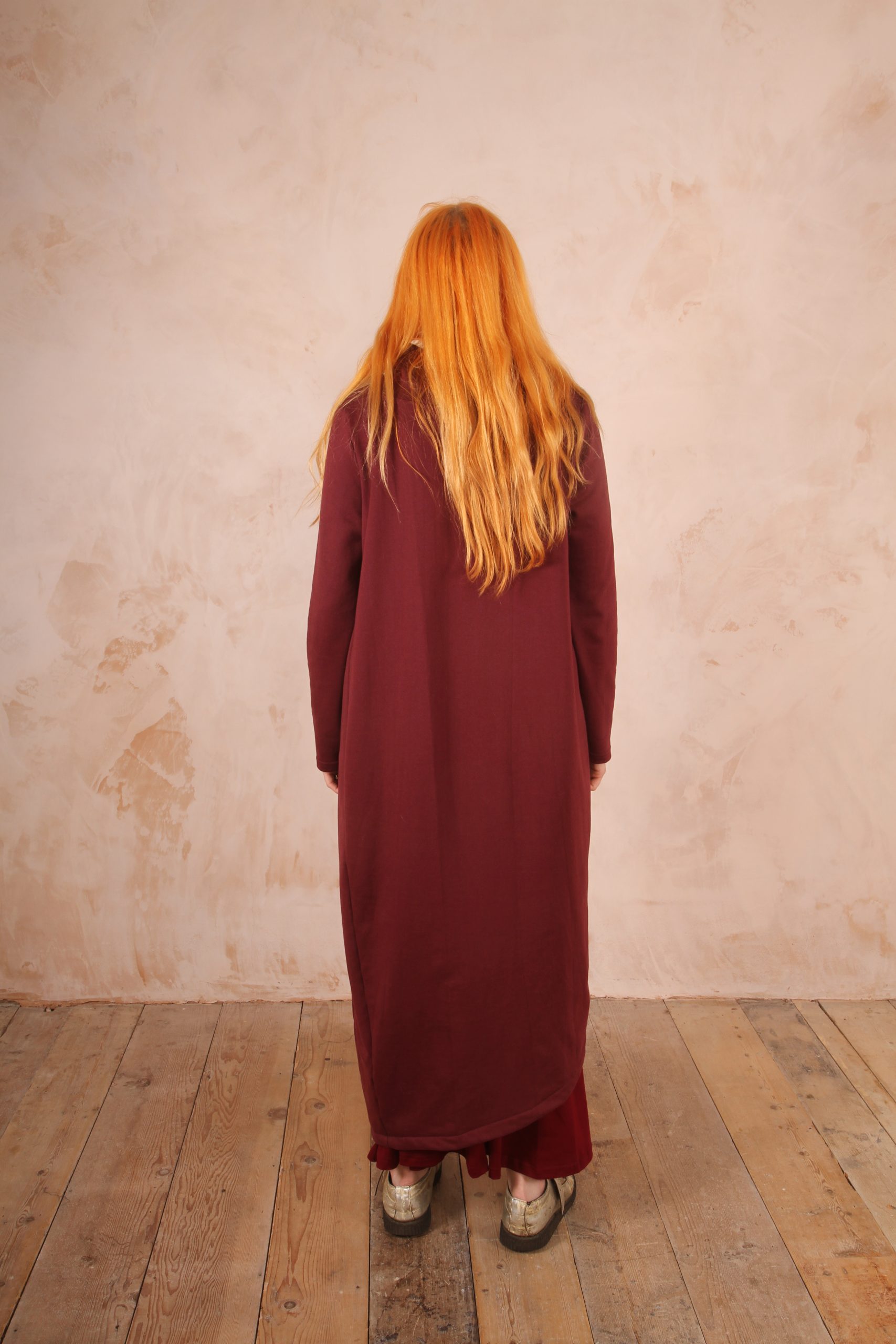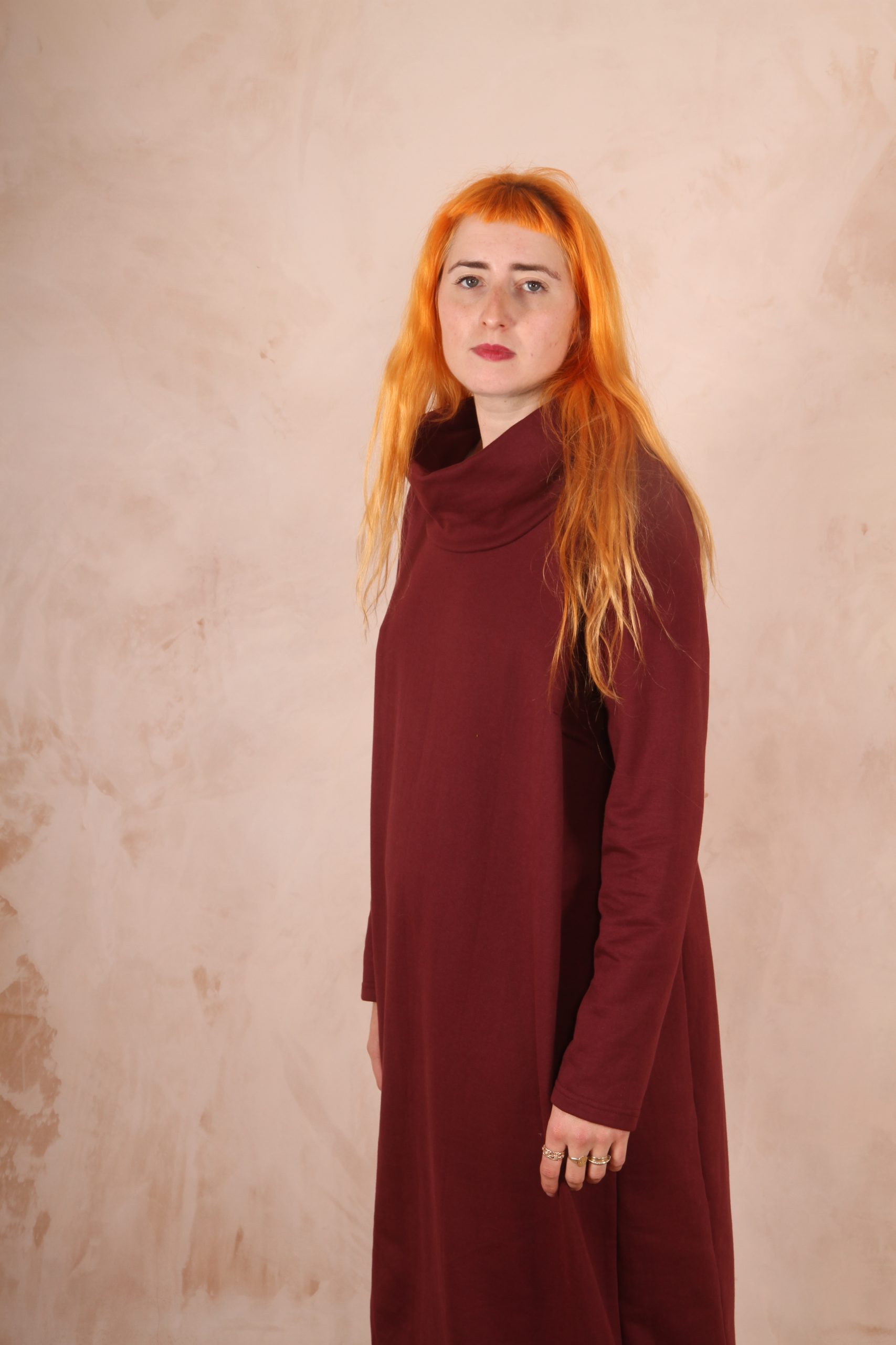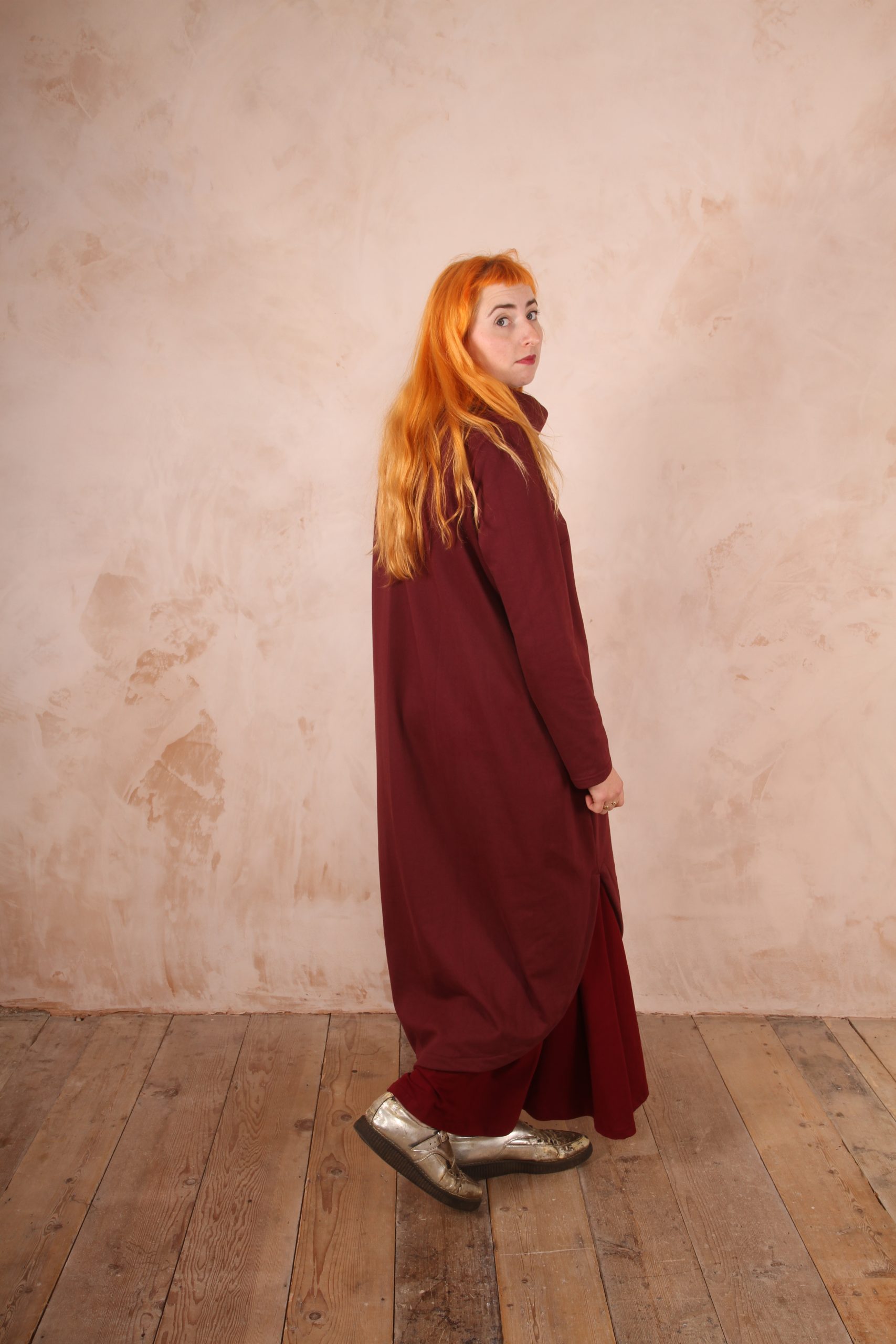The Anya Dress is the perfect dress for lounging at home and for winter trips out as it is the perfect length not to touch the ground and long enough to keep you warm and cozy.