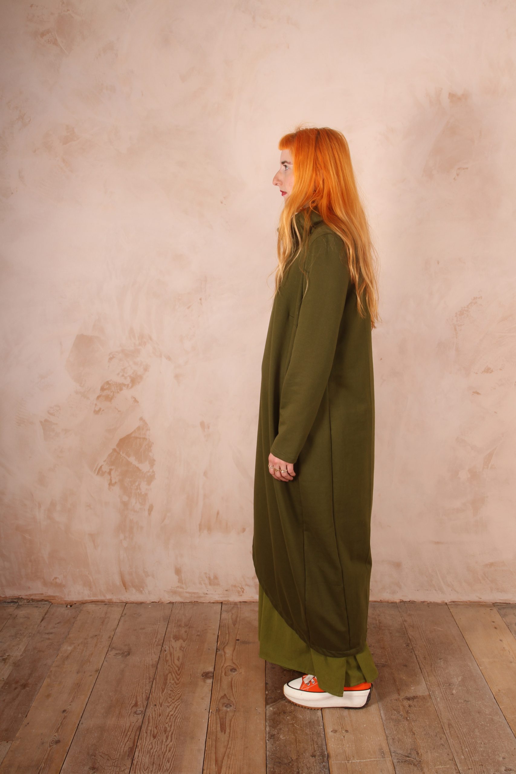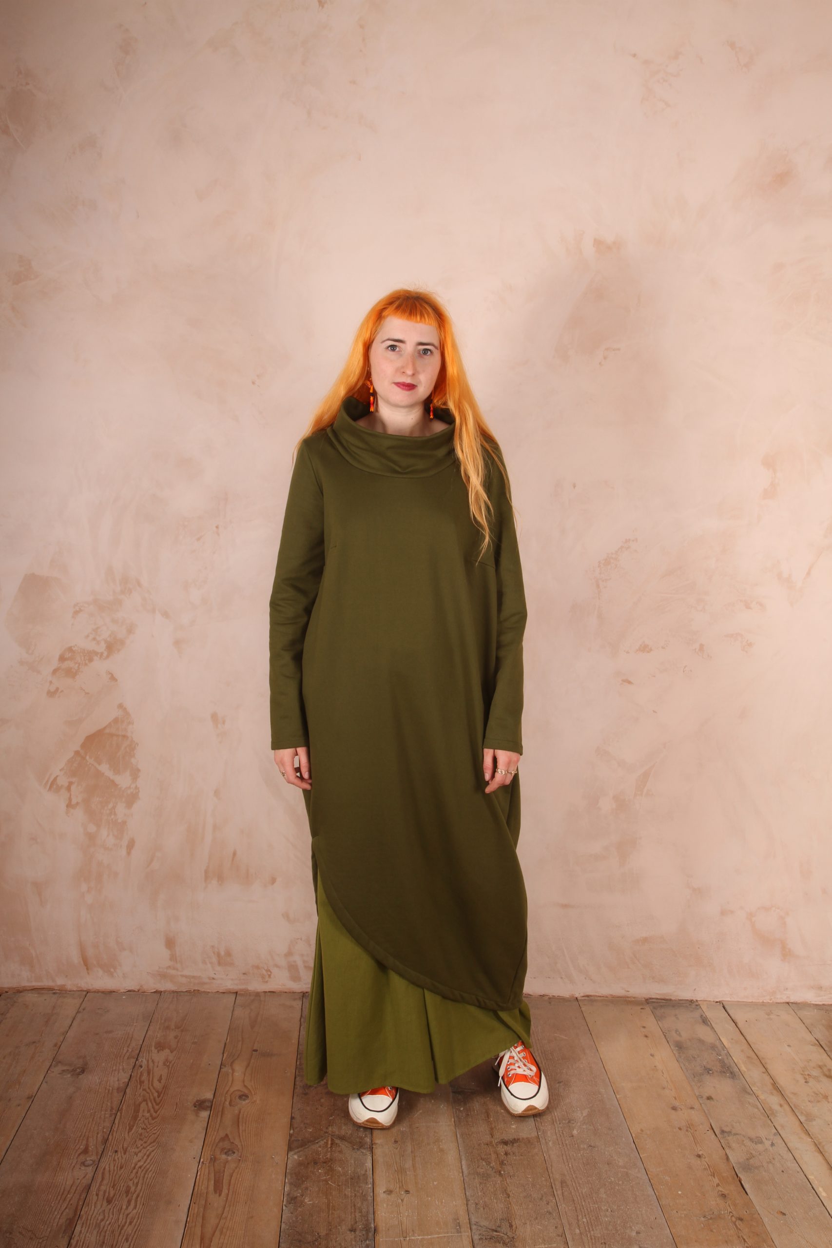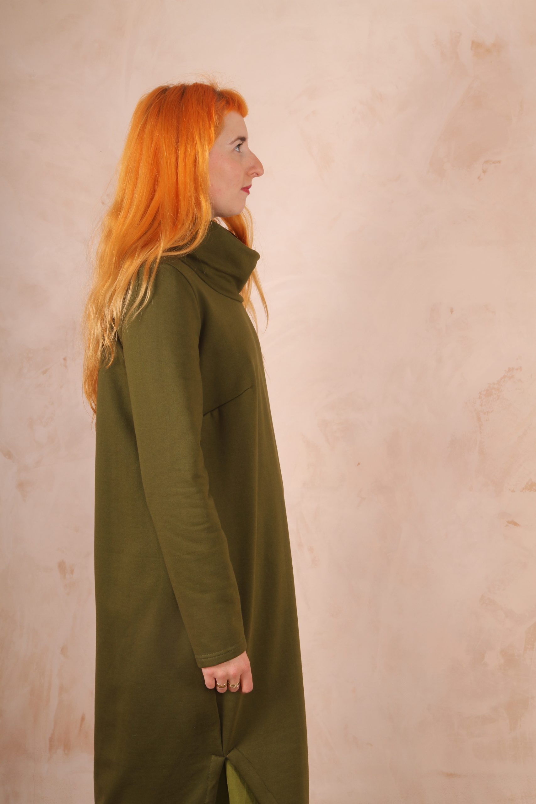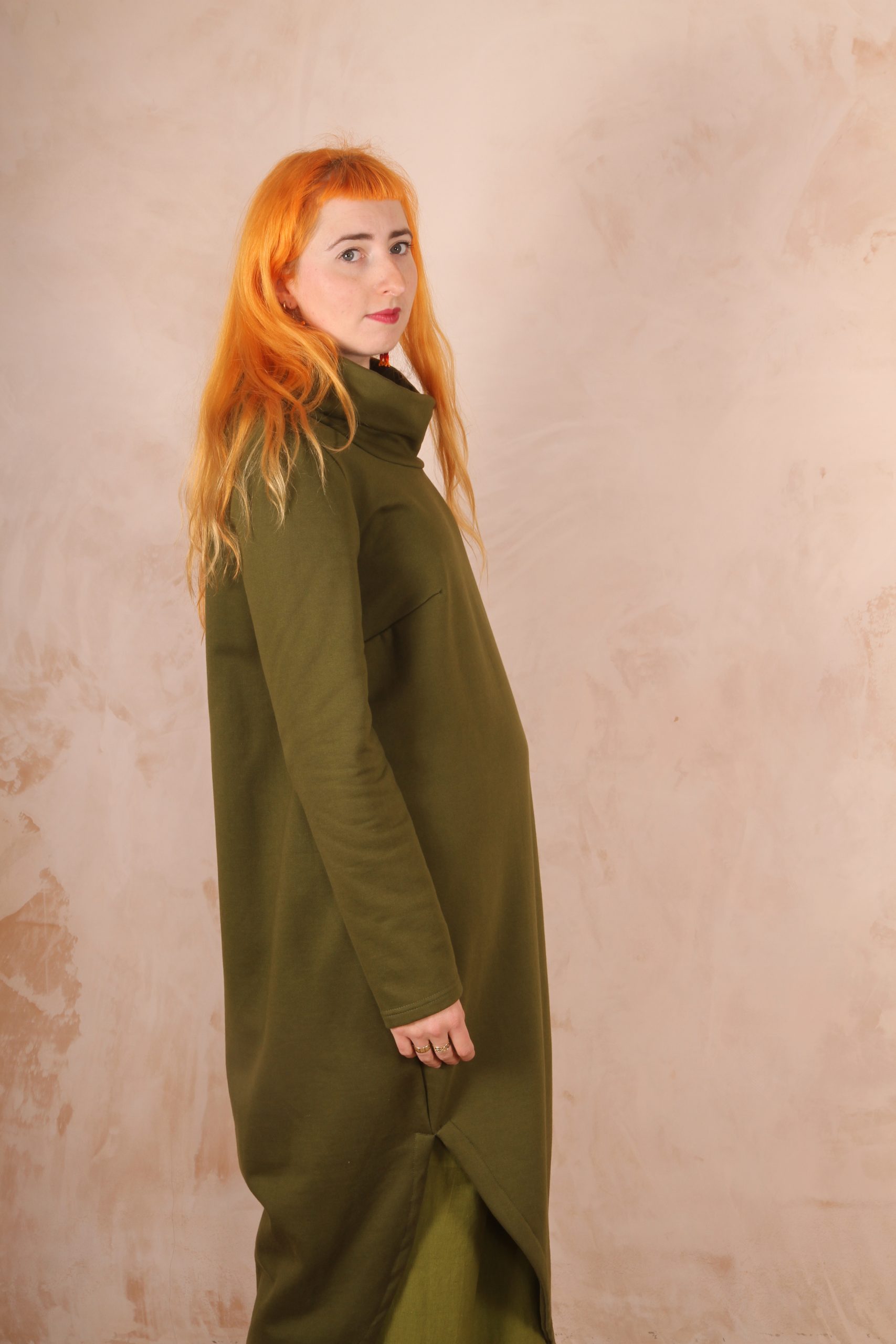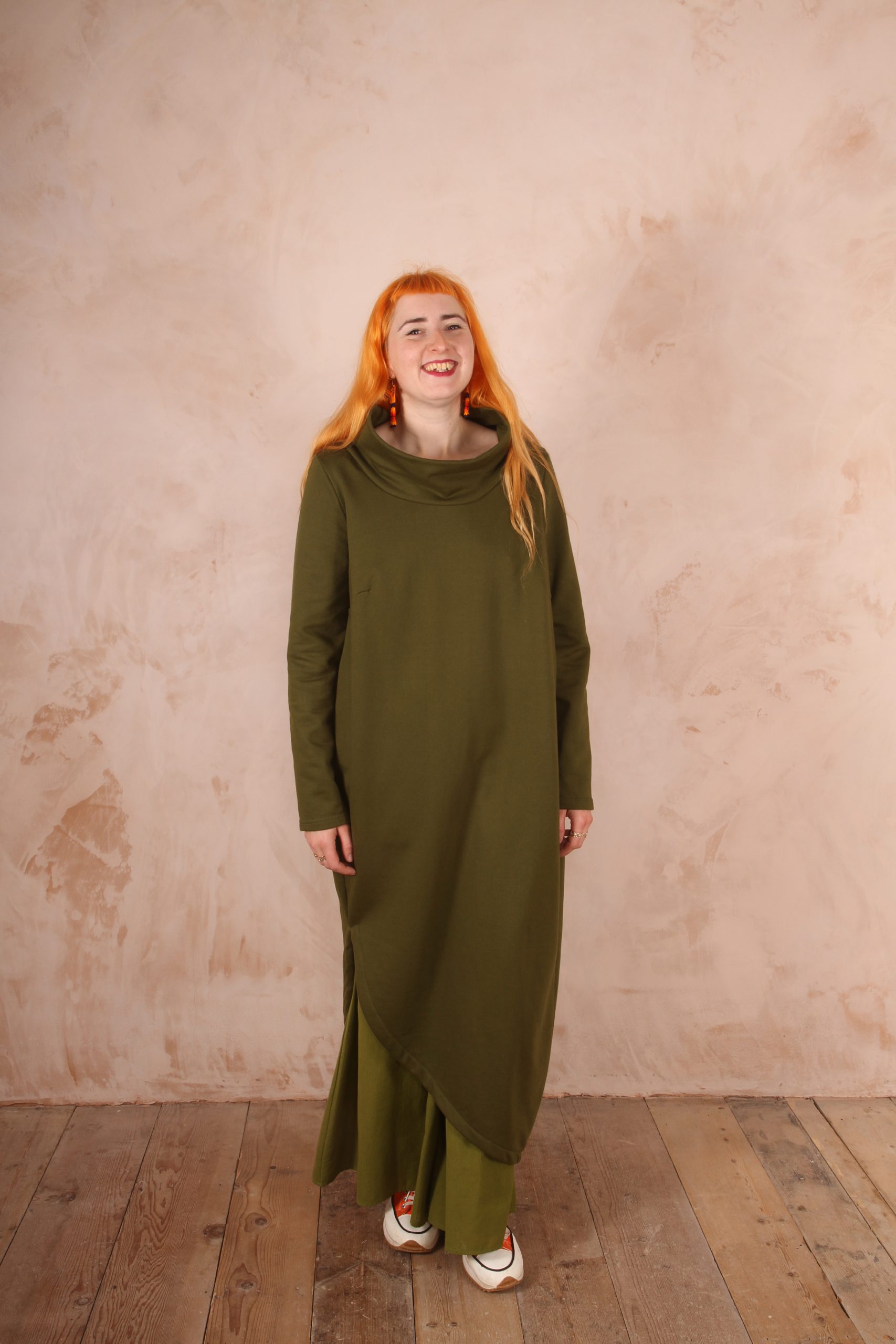 The Anya Dress is the perfect dress for lounging at home and for winter trips out as it is the perfect length not to touch the ground and long enough to keep you warm and cozy.
