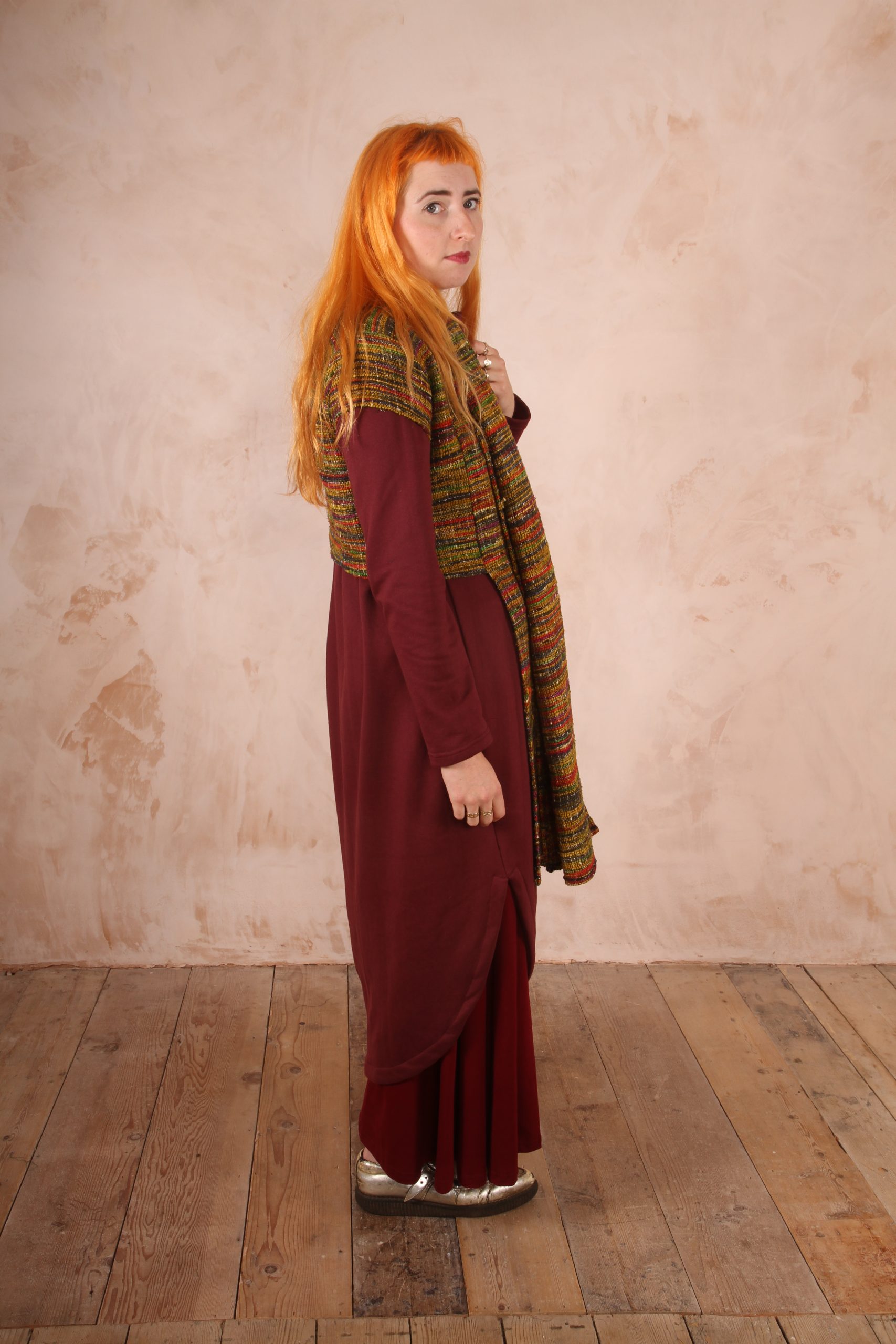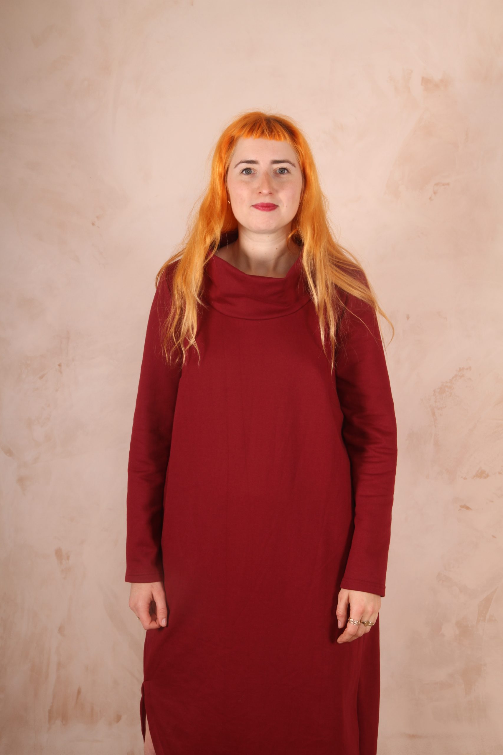 The Anya Dress is the perfect dress for lounging at home and for winter trips out as it is the perfect length not to touch the ground and long enough to keep you warm and cozy.