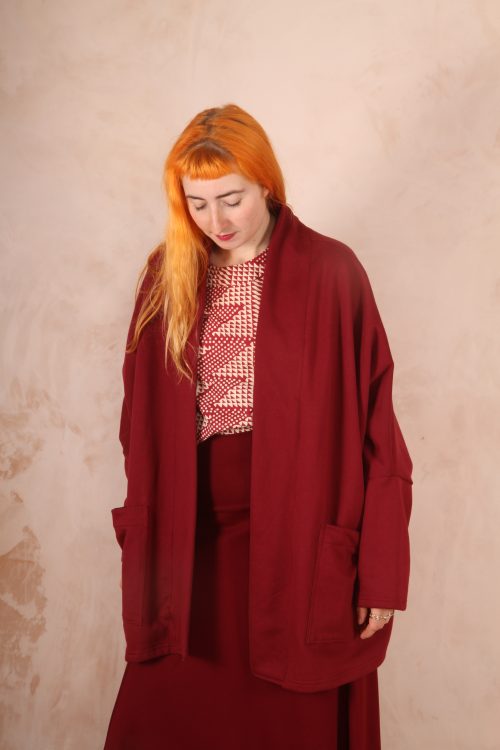 Wear as a winter over-layer with a built in scarf or as a summer jacket. Funky, functional and flattering.