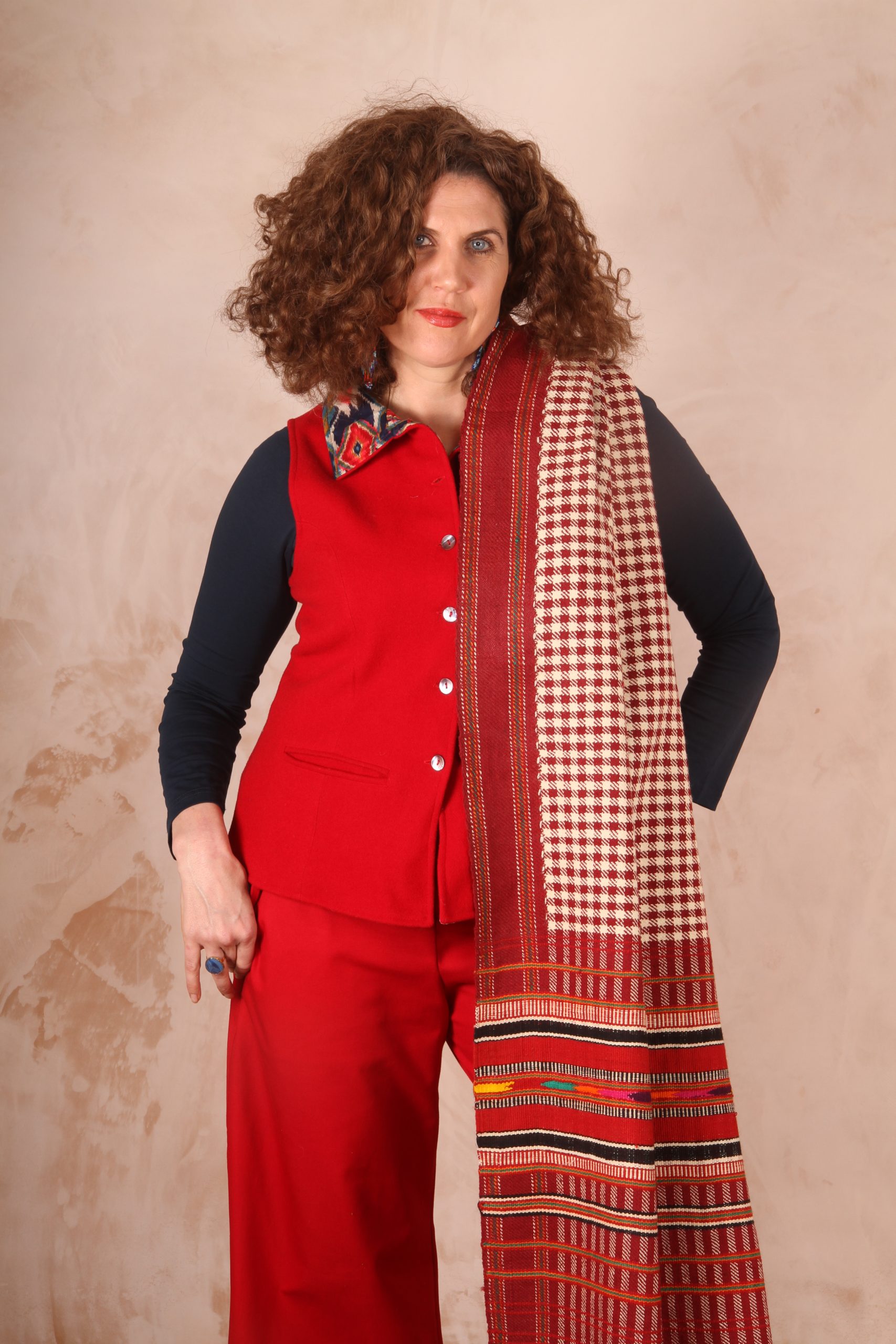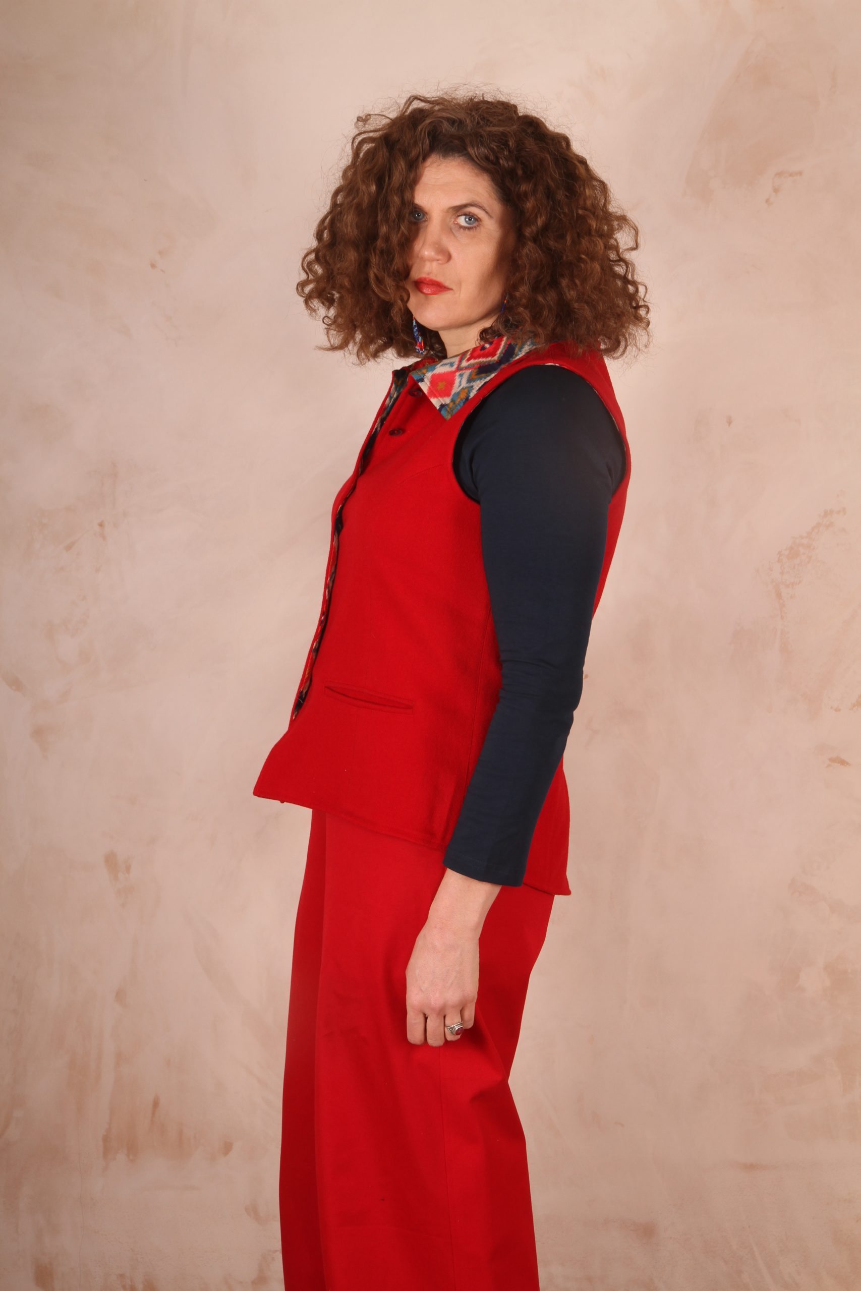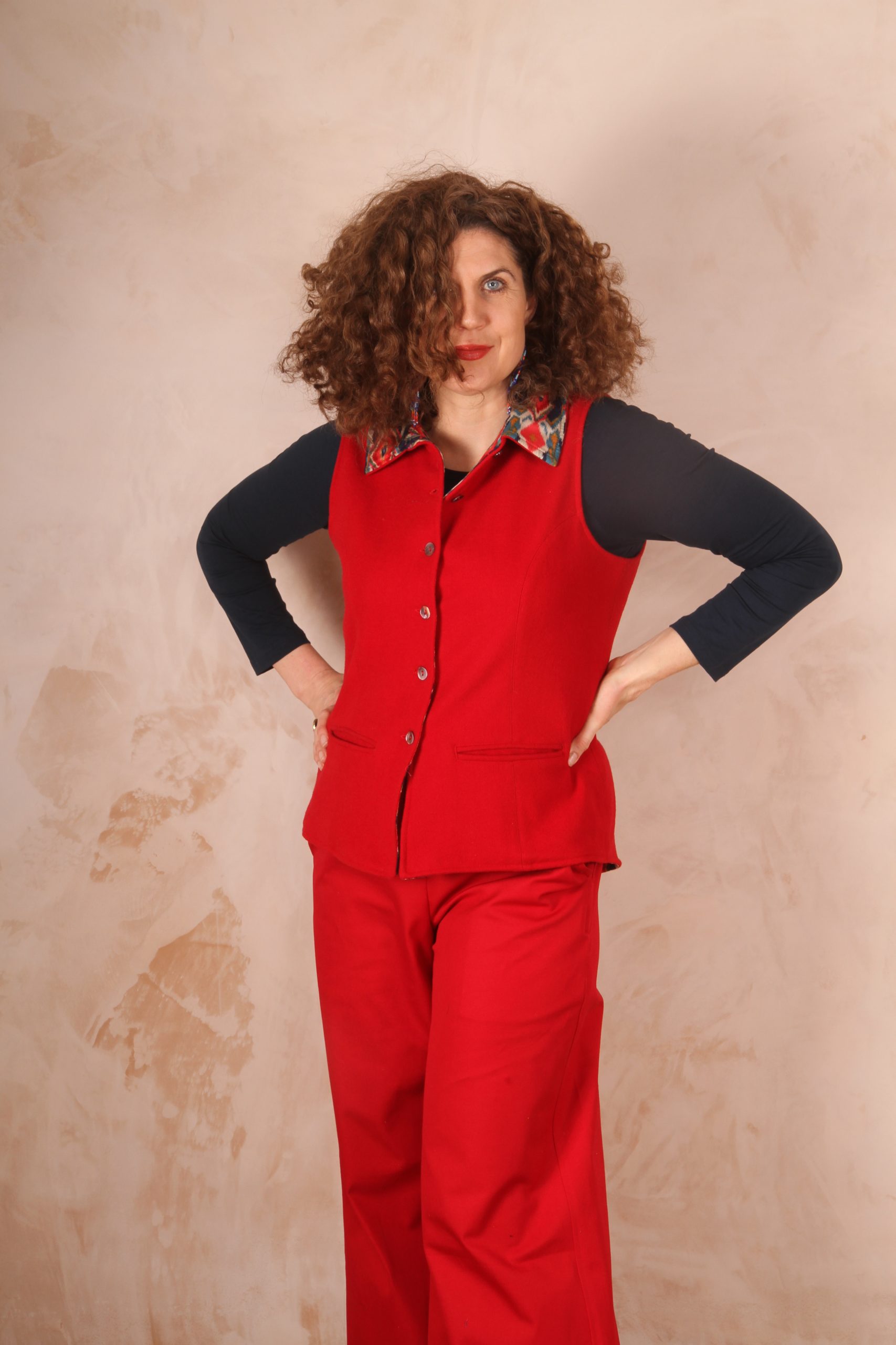 These waistcoats are fluid as a summer layer or a winter layer over a jumper. Casual with an attitude and smart with a twist. This is one of the seminal Haruka designs and emerged from a confluence of India meets tweed vibes more than 15 years ago. I know many people who are still wearing their original waistcoats! It's a timeless classic piece.