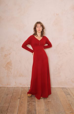 The tightly knitted single ply lambswool drapes softly, offering natural, breathable warmth and comfort through the colder months. Perfect for ceremony and cold days when warmth and elegance converge. It can be worn alone as a statement piece or layered with knitwear and boots. The Rhiannon Dress is a luxurious yet grounded piece that you will treasure over the years and I hope that it will become, in some way, a part of your life. A piece that you wear to mark special occasions or just simple moments, because you are worth it!