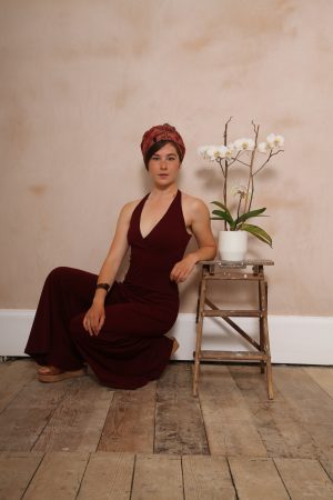 The Lace T-back gives a sexy but elegant vibe. The top of the jumpsuit is body-hugging with a cross-over chest finishing in an empire line. The wide-leg trousers skim the bum and gently flare towards the bottom like palazzo pants do.